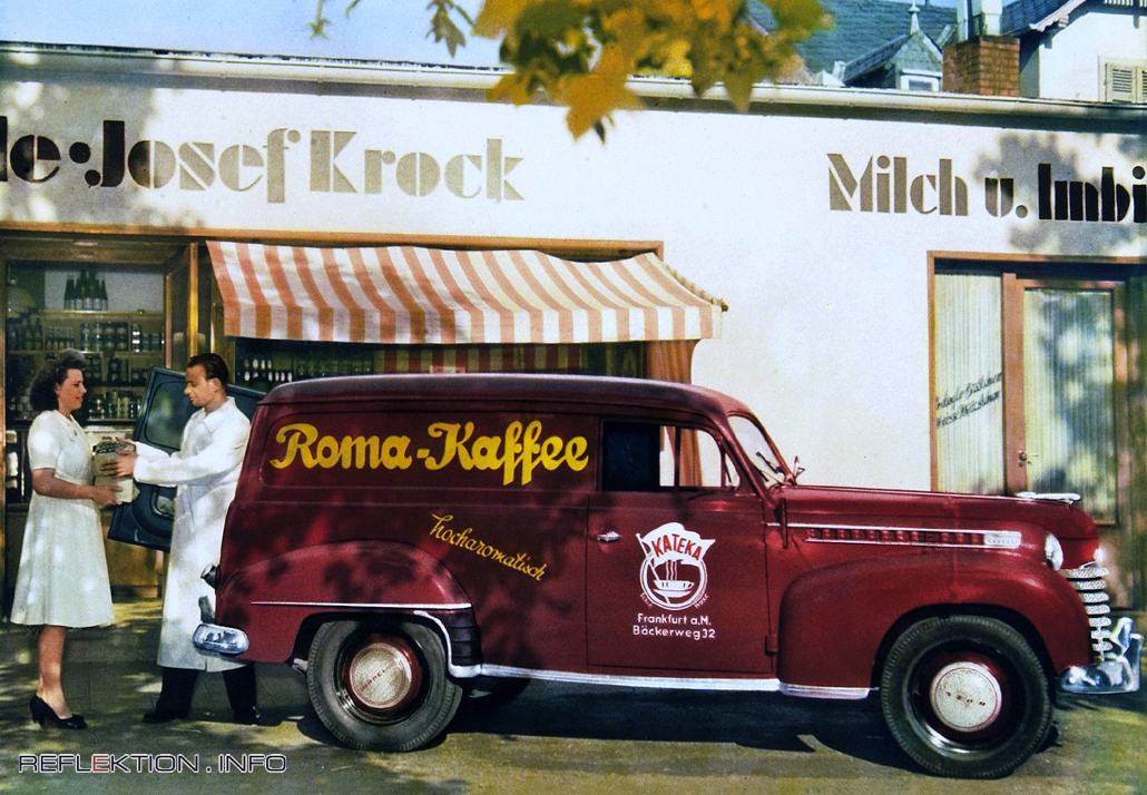 OPEL OLYMPIA Basierend auf dem Vorkriegs-OLYMPIA aus den Jahren 1936 - 1940 konnte OPEL ab 1947 die Serienfertigung des überarbeiteten OLYMPIA wieder aufnehmen. Viele technische Verbesserungen und Neuerungen kennzeichneten das Nachkriegsmodell. Die meisten Fahrzeuge wurden als Limousine produziert, nur eine geringe Anzahl des Modells wurde als Lieferwagen verkauft. Mit 40 PS aus einem 1,5 Liter-4 Zylindermotor wurde eine Höchstgeschwindgkeit von 115 km/h erreicht. Übrigens war OPEL wegweisend - der OLYMPIA war schon 1936 der erste PKW mit selbsttragender Karosserie in Deutschland.