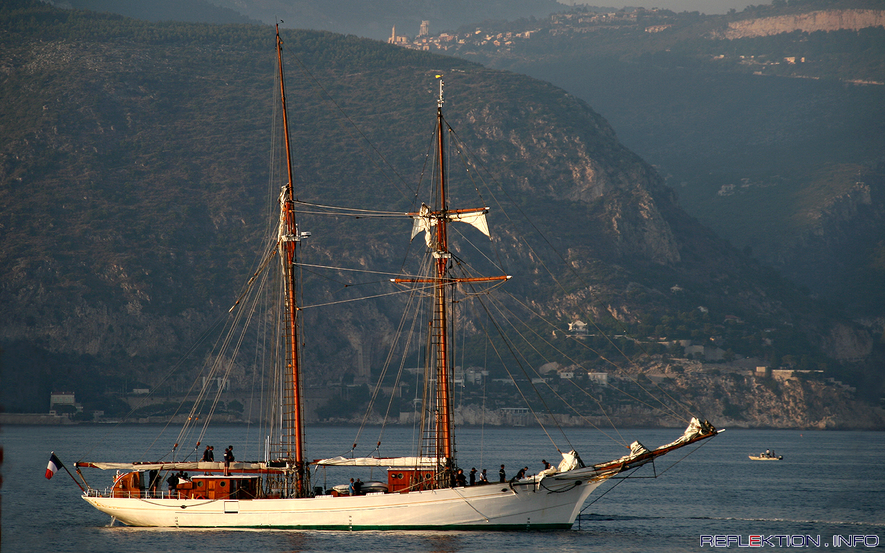 Schoner ÉTOILE - Segelschulschiff der französischen Marine 1932 wurden für die französische Marine zwei Segelschulschiffe gebaut. ETOILE und ihre Schwester LA BELLE POULE entstanden nach Plänen aus dem 19. Jahrhundert für den Bau von Zweimastschonern zum Kabeljau-Fang im Nordmeer. Holzrumpf und Takelung entsprechen den historischen Vorbildern, ansonsten sind sie speziell als Segelschulschiff ausgelegt. In heimischen Gewässern ist meist jedes Schiff für sich allein unterwegs, bei Auslandsreisen in Mittelmeer, Atlantik, Nord- und Ostsee segeln sie stets gemeinsam. Die Schoner sind über alles 37,50 Meter lang, 7,40 Meter breit und liegen bis zu 3,65 Meter tief im Wasser. Die Segelfläche beträgt 450 m². Für den windunabhängigen Vortrieb sorgt ein 300 PS starker Deutz-Dieselmotor. Zur Stammbesatzung gehören 20 Mann, 30 Kadetten fahren zur Ausbildung mit.