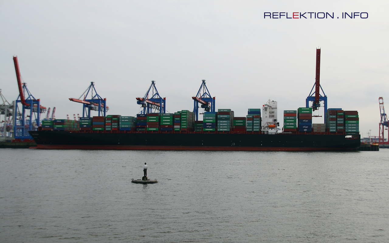 Aussichtspunkt Balkenhol-Anleger Im Hamburger Hafen im Hauptfahrwasser der Elbe, genau gegenüber vom Containerterminal Burchardkai ist ein neuer Anleger errichtet worden. Vorerst ist es nur ein Versuch, daher ist der Ponton auch relativ klein. Eine neue gute Idee, um dem ständig größer werdenden Touristenstrom eine weitere Attraktion im Hafen anbieten zu können. Zu erreichen ist der Anleger mit der Elbfähre Linie 62, die direkt an den St. Pauli Landungsbrücken ablegt. Dem Schiffsführer ist das Ziel ‘Balklenhol-Anleger’ rechtzeitig anzuzeigen, da jetzt eben nur eine Person sich auf der Aussichtsplattform aufhalten kann. Zur Zeit ist die Plattform ständig besetzt. Kein Wunder, denn hier direkt am Hauptfahrwasser rauschen die 350-Meter-Frachter nur wenige Meter entfernt und zum Greifen nahe am Besucher vorbei. So kann es schon einmal etwas schaukelig werden - aber das Erlebnis entschädigt für alle Unbill. Zur Not kann der Besucher auch die an dem Ponto angebrachten Haltegriffe ergreifen. Bei entsprechender Nachfrage kann der Hersteller Balkenhol jederzeit weitere Plattformen herstellen.