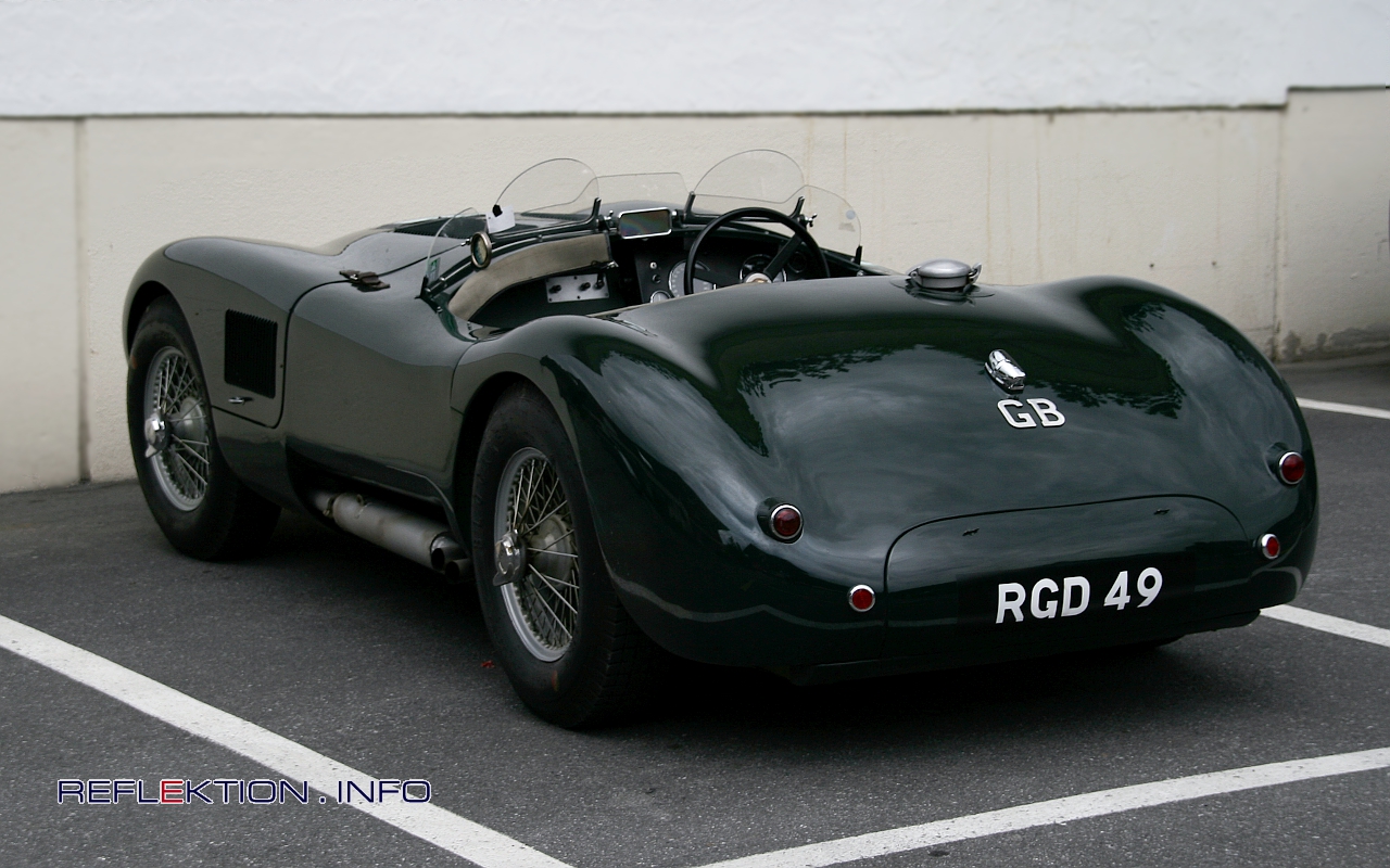 JAGUAR XK 120C - C TYPE Der schnell als C-Type (C steht für Competition) bekannte Sportwagen gewann 1951 unter Peter Walker und Peter Whitehead die 24 Stunden von Le Mans. Der erste von fünf Siegen für die britische Sportwagenmarke. JAGUAR produzierte von 1951 bis 1953 zehn Werkswagen und zusätzlich 44 Kundenwagen, die von einem modifizierten XK Motor mit ca. 210 PS angetrieben wurden. Insbesondere der C-Type hat den sportlichen Charakter der Marke JAGUAR federführend beeinflusst.