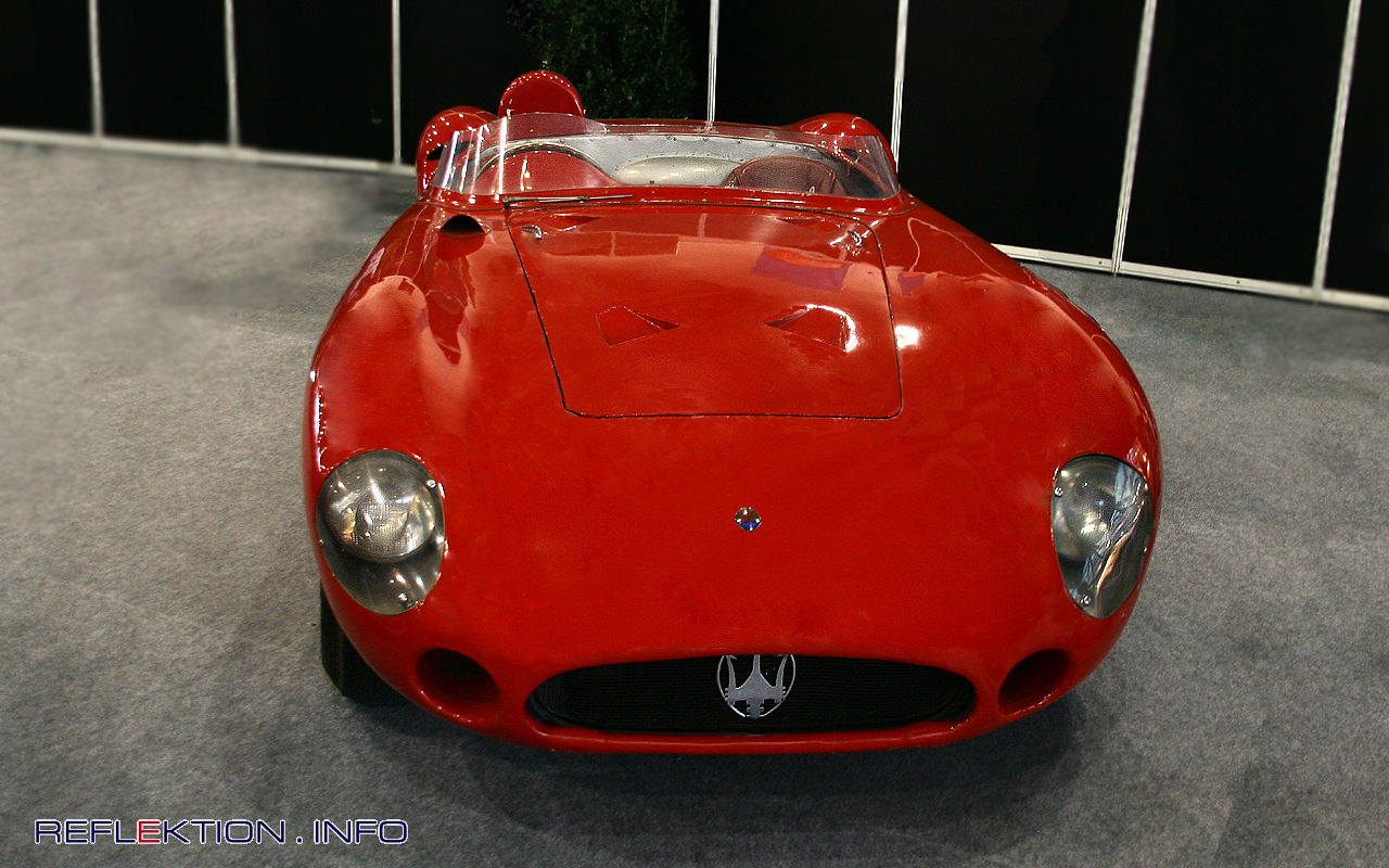 MASERATI 300 S Der Maserati 300S war konzipiert für die FIA World Sportscar Championship. In den Jahren 1955 - 1958 wurden 28 Exemplare produziert. Der 3-Liter-Reihen-Sechszylinder leistet rund 245 PS bei 6200 U/min. Mehr als 1 Dutzend Fahrzeuge sind bis heute erhalten, eines davon gehört Mark Knopfler, der mit dem Fahrzeug an historischen Rennen teilnimmt.