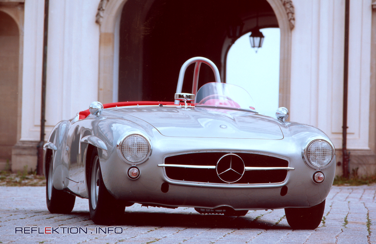 MERCEDES-BENZ 190 SL Von 1955 bis 1963 baute MERCEDES-BENZ rund 25.000 Fahrzeuge vom Typ 190 SL, intern als R 120 bezeichnet. Ein Großteil davon wurde in die USA verkauft. Der 1,9-Liter-4-Zylinder-Motor leistet 105 PS. Das synchronisierte 4-Gang-Schaltgetriebe ist für eine Höchstgeschwindigkeit von rund 175 km/h ausgelegt. In einer Spezialausrüstung wurde das Fahrzeug auch als Rennversion angeboten.