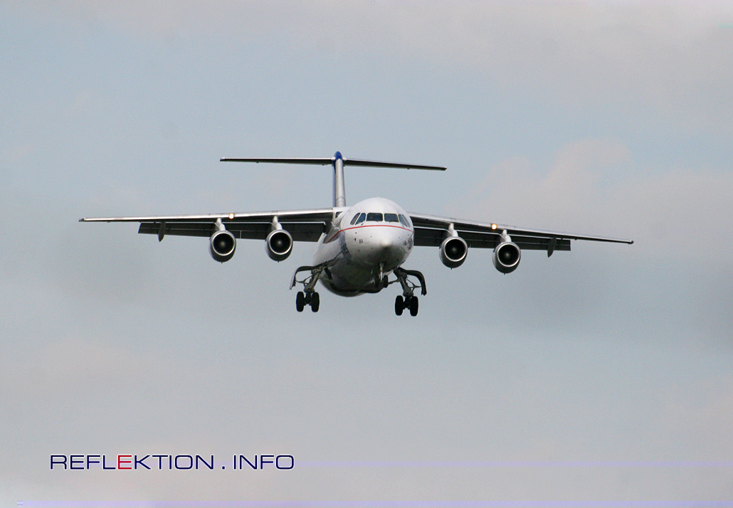 BRUSSELS AIRLINES BAe AVRO RJ100 JUMBOLINO OO-DWA Der JUMBOLINO ist 1997 fabrikneu an die belgische Fluglinie DELTA AIR TRANSPORT geliefert worden und für die traditionsreiche, belgische SABENA geflogen. Seit deren Zusammenbruch sind viele Maschinen für die Nachfolgegesellschaft BRUSSELS AIRLINES unterwegs. In nur geringer Höhe von rund 70 Metern überfliegt der JUMBOLINO den Fotografen und setzt rund 500 Meter weiter auf der Landebahn 23 des ältesten Flughafens der Welt, Hamburg-Fuhlsbüttel, auf. Nach der Übernahme von BRUSSELS AIRLINES durch die LUFTHANSA führt die EU eine wettbewerbsrechtliche Prüfung durch, deren Entscheidung bis zum 1.7.2009 fallen soll. Die EU-Kommission hat wegen einer Verringerung des Wettwewerbs Bedenken gegen die Übernahme geäußert.