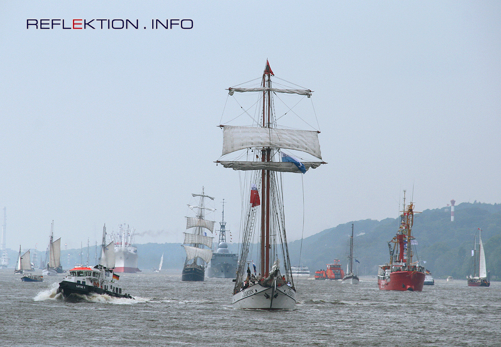 822. Hafengeburtstag Hamburg 6. - 8. Mai 2011 An der Einlaufparade zum größten Hafenfest der Welt werden heute ab 13 Uhr rund 320 Schiffe aller Größen und Arten teilnehmen, darunter Großsegler und Kreuzfahrtschiffe . Dieses Bild der Einlaufparade von 2009 zeigt im Vordergrund den niederländischen Topsegelschoner TOLKIEN.
