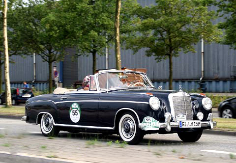 Von 1958 bis Ende 1960 baute MERCEDES nur 1100 Fahrzeuge diese eleganten Cabrios. Das abgebildete Fahrzeug ist bereits mit dem Motor des Nachfolgers ausgestattet, der 6-Zylinder-Motor mit 2195 ccm leistet jetzt 120 PS statt bisher 115.