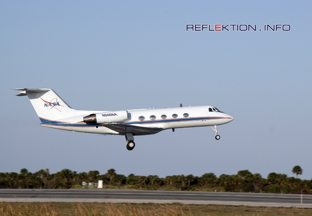 GRUMMAN GULFSTREAM II STA NASA N946NA Die NASA nutzt diese GULFSTREAM II als fliegenden Simulator zur Übung des Landemanövers mit dem Space Shuttle ein. Das Cockpit ist dazu in Instrumentierung und Optik dem Space Shuttle angepaßt worden, so daß die Flugeigenschaften eines ohne Antrieb im Landeanflug gleitenden Space Shuttle sehr gut imitiert werden.
