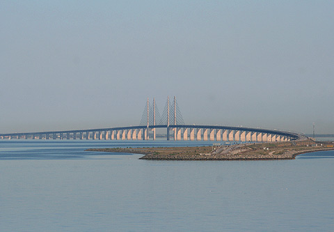 Seit 2000 verbindet die 8 km lange und 57 Meter hohe Brücke als längste Schrägseilbrücke der Welt die dänische Hauptstadt Kopenhagen mit dem schwedischen Malmö.