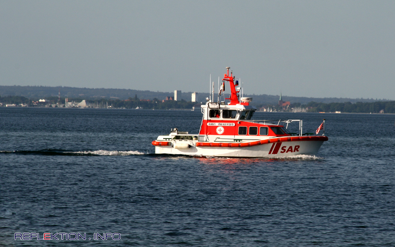 DGzRS Rettungsboot HANS INGWERSEN Das 1999 bei der Schweers-Werft in Bardenfleth bei Bremen gebaute Rettungsboot HANS INGWERSEN ist 9,41m Lang, 3,61m breit und hat einen Tiefgang von 1 m. Der 320 PS starke Dieselmotor ermöglicht eine Höchstgeschwindigkeit von 18 Knoten (33 km/h), kurzfristig sogar 23 Knoten (rund 42,5 km/h). Das Seenotrettungsboot (SRB) der 9,5-Meter-Klasse gehört der Deutschen Gesellschaft zur Rettung Schiffbrüchiger (DGzRS). Seit 2000 ist die HANS INGWERSEN in Travemünde zuhause und patroulliert im Gebiet der Lübecker Bucht. Benannt ist das Boot nach dem Lehrer und CDU-Landtagsabgeordneten Hans Ingwersen (1914-1992), aus dessen Nachlaß eine nicht unerhebliche Spende der DGzRS zufloß.