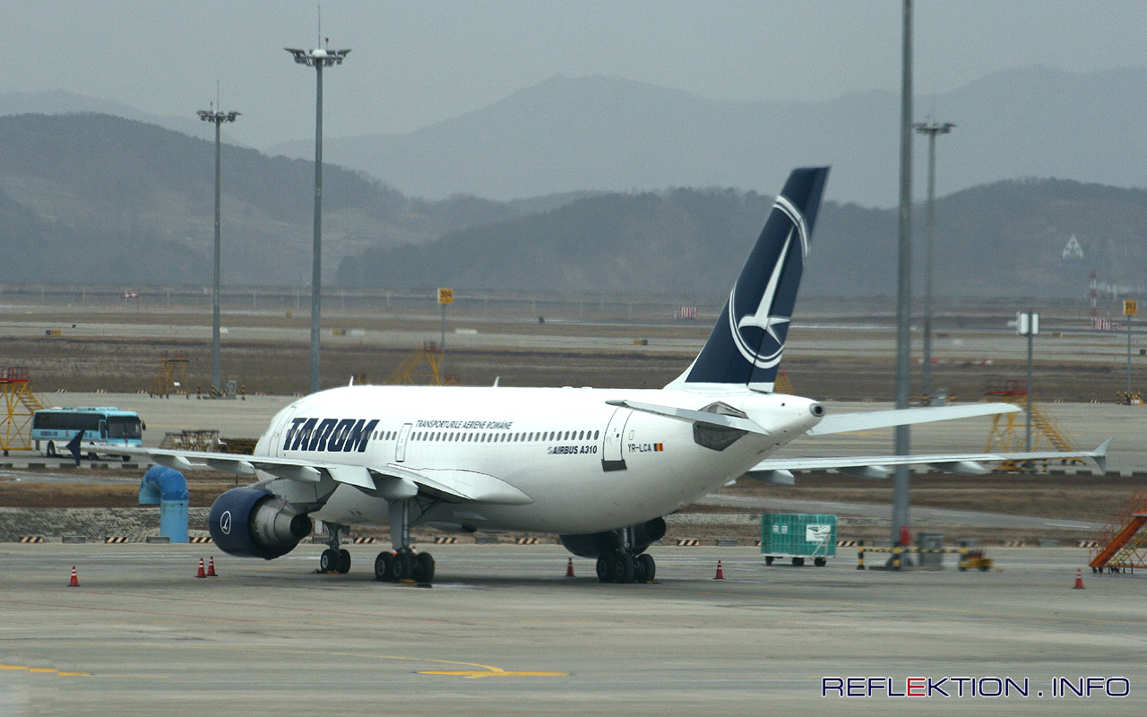 TAROM AIRBUS A310-325(ET) TRANSILVANIA YR-LCA Die staatliche rumänische Fluggesellschaft TAROM betreibt von ihrem Standort Bukarest eine Flotte von 24 Maschinen. Angeboten werden zur Zeit nur nationale und europäische Verbindungen. Neben 4 A318, 9 ATR 72 und 9 B737 fliegen auch noch 2 A310 (YR-LCA und YR-LCB) aus dem Jahre 1991 und 1992. YR-LCA mit dem interessanten Namen TRANSILVANIA ist ausschließlich in Regierungsdiensten unterwegs. Am 20. März 2011 macht sie Station am Flughafen von Incheon/Seoul, Südkorea.