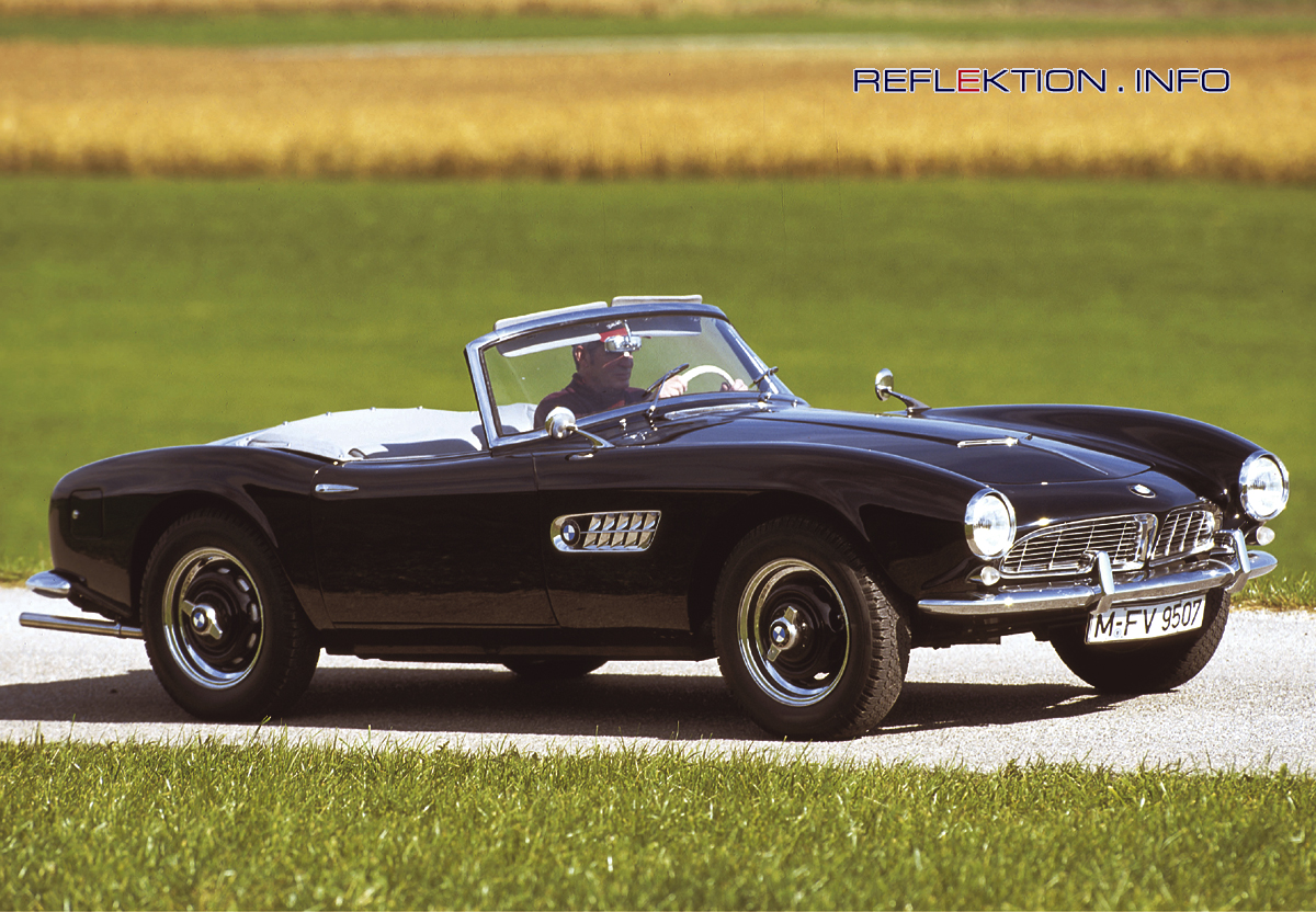 BMW 507, Modell 1959 Der BMW 507 wurde von Graf Goerz bereits 1952 entworfen. Unübertroffen an Eleganz und wegweisend im Design stand der 507 50 Jahre später Modell für den BMW Z8. Leider war der 507 auch extrem teuer, so daß dem Modell eine größere Verbreitung versagt blieb. Einige technische Daten: Länge 4397 mm, Breite 1651 mm, Höhe 1206 mm, Radstand 2479 mm Tankinhalt 65 Liter, V8-Zylinder, 16 Ventile, 3169 ccm; 167 PS bei 5000 U/min, 235 Nm bei 4000 U/min, Höchstgeschwindigkeit 220 km/h