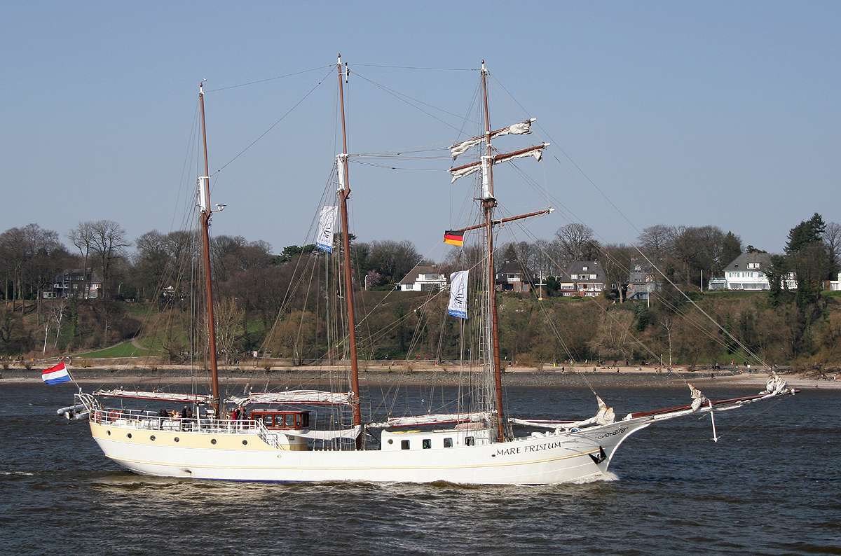 Die MARE FRISIUM ist 52 Meter lang und fährt heute als Dreimast-Toppselgelschoner. 1916 gebaut und als Anderthalbmaster geriggt, fischte das Schiff als Logger zunächst auf der Dogger- und Vikingbank. Später wurde es als Frachtschiff von Hamburg nach Schweden und St. Petersburg eingesetzt. Es transportierte Holz aus Skandinavien nach Belgien und England. 1995 bis 1997 Umbau zum komfortablen Passagierschiff mit großer Lounge mit Bar und Rundum-Aussicht auf Deck. Kabinen mit Aircondition für maximal 34 Personen und 2 großzügige Salonbereiche mit Bar.