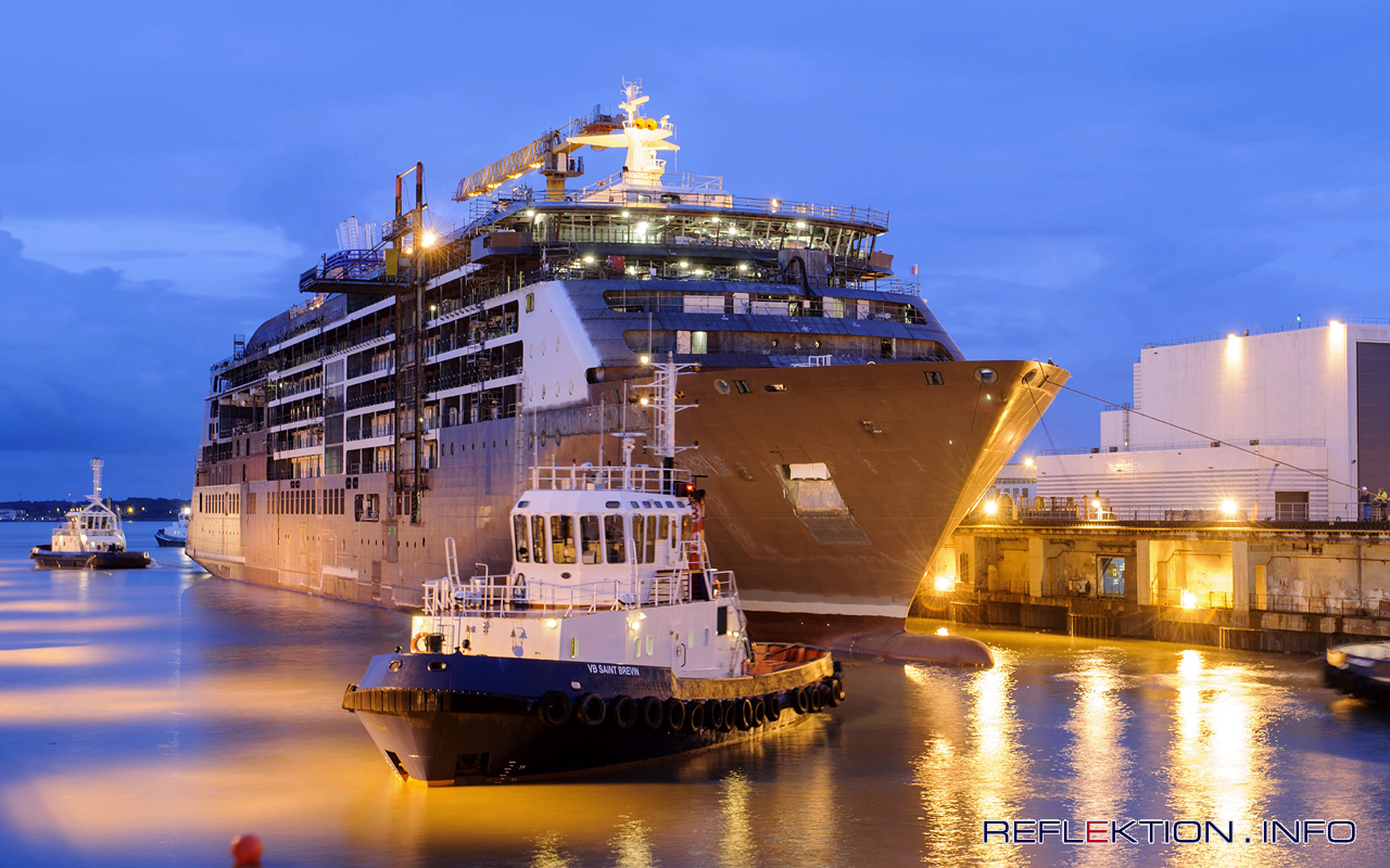 MS EUROPA 2 Vier Monate nach der Kiellegung hat die EUROPA 2 am 6. Juli das Trockendock der Werft STX France in Saint-Nazaire verlassen. Im Rahmen einer feierlichen Zeremonie wurde das Dock geflutet und der Neubau von Hapag-Lloyd Kreuzfahrten erstmals zu Wasser gelassen. Mitarbeiter des Unternehmens und der Werft sowie Gäste verewigten ihre besten Wünsche am Rumpf des Neubaus. Mit dem Verlassen des Trockendocks beginnt jetzt der nächste Bauabschnitt der EUROPA 2: der Innenausbau an der Ausrüstungspier. 251 Suiten, acht Restaurants, ein modernes Theater sowie Bars, Lounges und öffentliche Bereiche entstehen an Bord des Neubaus. Insgesamt sind 835 Werftarbeiter mit dem Neubau-Projekt beschäftigt, die bis zur Auslieferung im Frühjahr 2013 rund 2,5 Millionen Arbeitsstunden aufwenden werden. Bislang sind bereits 10.000 Tonnen Stahl für die EUROPA 2 verwendet worden. Hapag-Lloyd Kreuzfahrten übernimmt das Schiff voraussichtlich Ende April 2013: die 14-tägige Jungfernfahrt der EUROPA 2 startet am 11. Mai 2013 in Hamburg und führt nach Lissabon. Das Schwesterschiff der EUROPA wird legere Variante im Luxus-Segment positioniert. Die EUROPA 2 wird maximal 516 Gästen den größten Raum pro Passagier auf einem Kreuzfahrtschiff bieten. Das Schiff verfügt über ausschließlich Suiten mit Veranda und einer Mindestgröße von 28 Quadratmetern. Acht Restaurants sowie sechs Bars bieten kulinarische Vielfalt, ein großer Spa- und Fitnessbereich trägt dem Trend nach Wellbeing auf Reisen Rechnung.