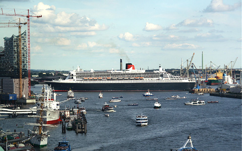 QUEEN MARY 2 in Hamburg Die QM2 ist in den Hamburger Hafen eingelaufen und das 365 Meter lange Schiff dreht auf der Elbe um 180°, um an seinem angestammten Liegeplatz am Kreuzfahrtterminal in der HafenCity festzumachen. Das Bild vom 13. August 2011 ist Synonym für die anstehenden 10 Besuche der QM2 in diesem Jahr in Hamburg: Immer am Kreuzfahrtterminal in der HafenCity jeweils von 7 - 19 Uhr am 12.05.2013 - 23.05.2013 - 10.06.2013 - 22.06.2013 - 24.08.2013 - 31.08.2013 01.10.2013 - 06.10.2013 - 06.11.2013 - 10.11.2013