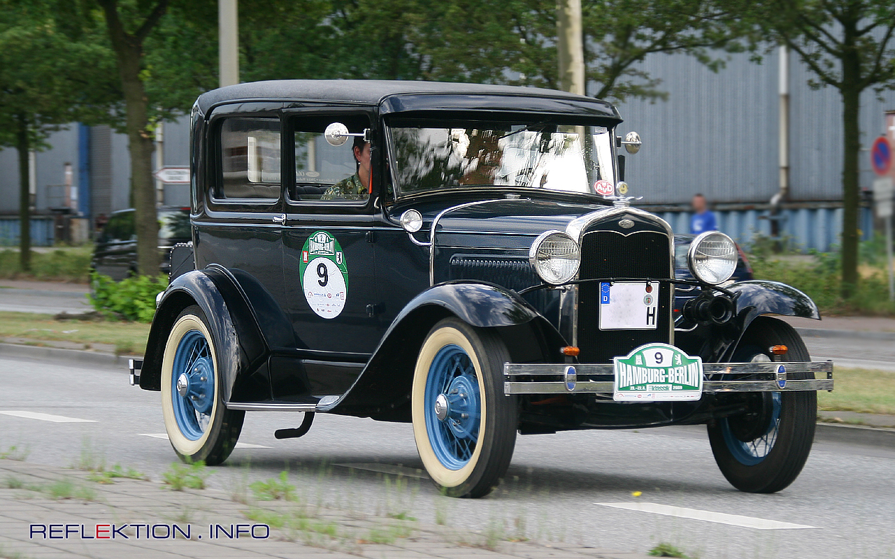 FORD MODELL A Rund 4,3 Millionen Fahrzeuge vom Modell A wurden von 1927 bis 1931 in verschiedenen Varianten wie Zweitürer Standard und Deluxe, Viertürer Standard und Deluxe, Phaeton Standard und Deluxe, Convertible Sedan, Coupé Standard und Deluxe, Sport-Coupé, Roadster-Coupé Standard- und Deluxe, zwei- und viersitziges Cabriolet, Town Car, Station Car, Pick up, Taxi und LKW u.v.m. produziert. Allen gleich war der Motor mit 3285 ccm in 4 Zylindern. 39 PS reichten für eine Höchstgeschwindigkeit von gut 100 km/h. Die Preisliste begann damals bei US $ 385 für das einfache Modell und reichte bis zu 700 US $. Heute sind für einen gut erhaltenen bzw. restaurierten Ford Modell A im Zustand 2 bis 3 mindestens Euro 15.000 zu veranschlagen.