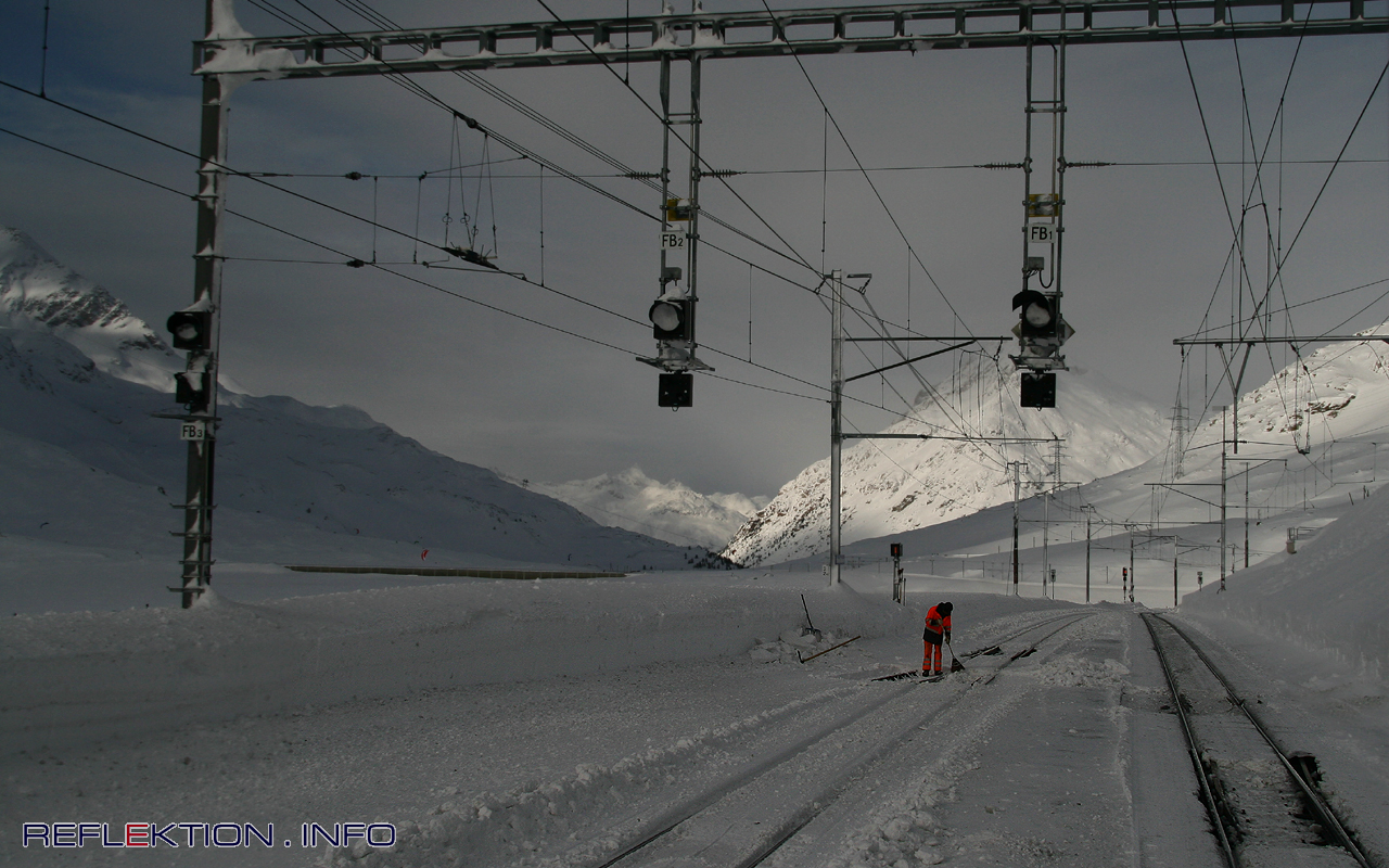 Alle reden vom Wetter - die Rhätische Bahn nicht Wer mit der Rhätischen Bahn im tiefsten Winter ganz pünktlich und zuverlässig bei rund minus 22° C auf 2256 Metern Höhe über die Alpen fährt, erinnert sich schnell an den alten bekannten Werbeslogan der DB. Allerdings, seitdem die DB eine AG ist, zwingt der alleinige Aktionär -der deutsche Staat- sie zu stetem Gewinndenken in Sinne von Shareholder’s Value und presst Jahr für Jahr um die 500 Millionen Euro Dividende aus ihr, wie Saft aus einer Apfelsine. Und so gilt der bekannte Slogan natürlich nicht mehr, schon lange nicht mehr. Mit diesem aufgezwungenen Sparsamkeitsdenken an allen Ecken und Enden, das der ehemalige Vorstandsvorsitzende Mehrdorn jahrelang zur persönlichen Doktrin erklärt hatte, kann kein zuverlässiger Betrieb gewährleistet werden. So werden Weichenheizungen ausgebaut, Gleise und Gleisverbindungen entfernt. Fahrzeuge werden beschafft, die weder im Winter noch im Sommer funktionieren - Hauptsache billig. Diese Aufzählung ließe sich beliebig fortsetzen. Das Übel allerdings allein bei der Bahn zu suchen, wie sich in diesen Tagen der Bundesverkehrsminister Ramsauer empört, ist dreist und populistisch. Oder es zeugt von brillanter Unkenntnis. Da ist zuallererst auf politischer Ebene viel Unsinn wegzuputzen. Aber es steht zu befürchten, daß so schnell niemand bereit steht weder in der Politik noch bei der DB, die Schienen zu putzen und die Züge wieder auf Kurs zu bringen. Ganz im Gegensatz zur Rhätischen Bahn.