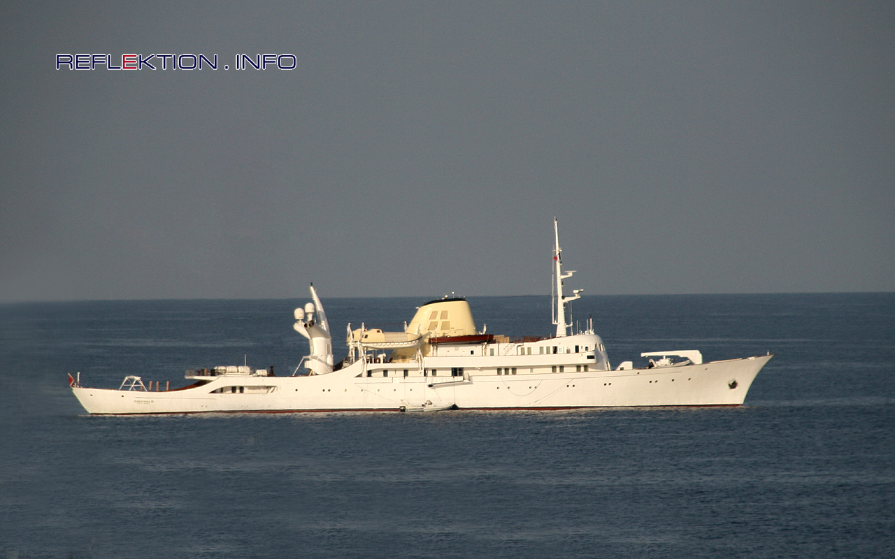 CHRISTINA O. 1942 stellte die kanadische Marine für den Krieg gegen Hitler-Deutschland die 99 Meter lange Fregatte HMCS STORMONT K327 in Dienst. Nach Einsätzen im Nordmeer gehörte die STORMONT zur D-Day-Invasionsflotte des 6. Juni 1944. 3 Jahre nach Kriegsende erwarb Aristotels Onassis das aufgelegte Schiff für US $ 34.000. Bei den Howaldtswerken in Kiel ging die Fregatte die nächsten 3 Jahre ins Dock. Für rund 3 Millionen US $ wurde aus der STORMONT die damals größte Privatyacht der Welt. Dieser Auftrag trug wesentlich zur Wiederentwicklung der Kieler Werft bei. Onassis taufte die Yacht auf den Namen seiner Tochter CHRISTINA . Zu den nun folgenden Mittelmeerkreuzfahrten waren zahlreiche Persönlichkeiten eingeladen. 8 Fahrten erlebte Winston Churchill, 3 Fahrten John F. Kennedy. Tito war dabei, ebenso der griechische Ministerpräsident Karamanlis. Wieviele Ideen zu politische Aktionen an Bord wohl geboren sein mögen. 1956 wurde die Hochzeit von Grace Kelly und Rainier III. an Bord gefeiert. Mit dabei Maria Callas, Eva Peron, Frank Sinatra, Marilyn Monroe. 1963 war Jackie Kennedy erstmals auf der CHRISTINA. 1981 erhielt der greichische Staat die Yacht als Geschenk. Zehn Jahre später war dem Staat das Schiff zu teuer geworden im Unterhalt und er suchte für einen unangemessen hohen Preis einen Käufer. Der Grieche Papanicolaou, der schon als Kind auf der CHRITINA gefahren war, kaufte die Yacht 1998. Nach einer großen Restaurierung, die Technik und Innenleben beinhaltete, lief die Yacht in Charter. Wieder waren bekannte Leute, allerdings mehr aus der Show Branche, an Bord: unter anderen Anna Nicole Smith, Paul McCartney, Puff Daddy, Donatella Versace, Tommy Hilfiger, Prinz Andrew mit Ex-Ehefrau Sarah Ferguson, Madonna, Johnny Depp und Tommy Lee. Aktuell ist die nach zwischenzeitlichen Umtaufungen jetzt CHRISTINA O. genannte Yacht auf Charterkreuzfahrt mit einem abendlichen Opern-Programm an Bord unterwegs. Sie liegt an der Cote d'Azur vor Beaulieu sur Mer bzw. St. Jean Cap Ferrat. Nachts dort über die Toppen geflaggt und beleuchtet - tagsüber fährt sie mal 15 Meilen nach Monaco oder anderntags mal 15 Meilen nach Nizza.
