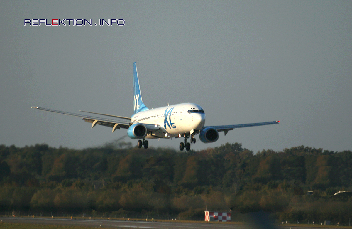 XL AIRWAYS BOEING 737-800 D-AXLF Die Charterfluggesellschaft XL Airways Germany aus Frankfurt/Main fliegt zur Zeit mit 3 Maschinen des Typs BOEING 737-800 für Reiseunternehmen, Eventveranstalter und andere Fluggesellschaften. Die mit 11 Jahren älteste der 3 Maschinen setzt zur Landung auf der Bahn 05 des Flughafens Hamburg-Fuhlsbüttel an. D-AXLF ist eine der wenigen 737-800 ohne Winglets.