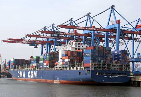 CMA CGM DEBUSSY Die DEBUSSY liegt in Hamburg-Waltershof am Container Terminal Burchardkai. Das Schiff verkehrt im Linienverkehr nach Asien und erreicht Hamburg rund viermal jährlich. Die DEBUSSY wurde 2001 bei Hanjin Ind. gebaut. IMO-Nr. 9235907 Länge: 300,25 m, Breite: 40,30 m, Tiefgang: 14,5 m Kapazität: 6627 TEU (20-Fuß-Container) Tonnage: 73.157 BRT Maschine: M&W Hundai 12K-98MC-C, Leistung: 68.536 KW, 1 Propeller Geschwindigkeit max. 26,5 Knoten (49 km/h)