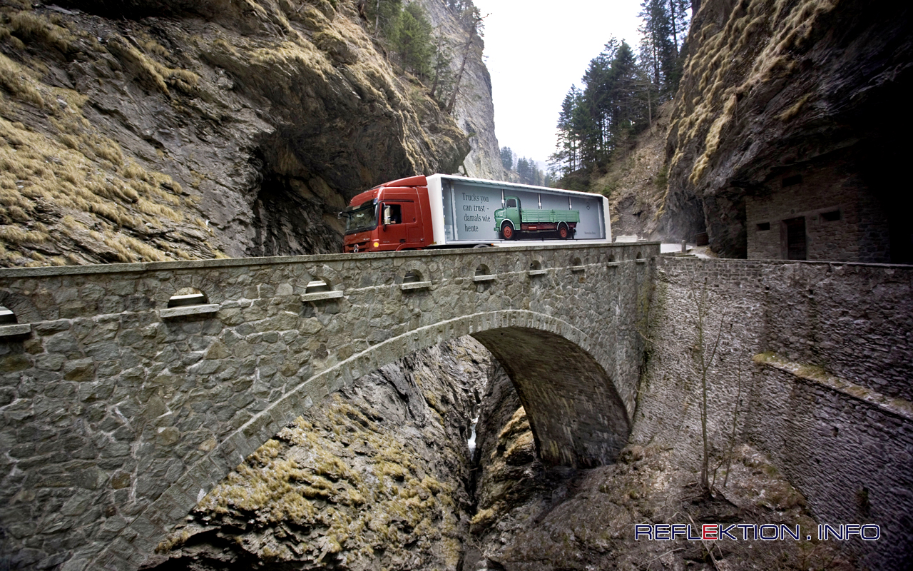 Mit der Veranstaltung „Transalp Trucking 2010“ wurde die enorme Effizienzsteigerung der Lastwagen für den Gütertransport deutlich gemacht. Seit über 50 Jahren steht der Prozess zur Reduzierung von Verbrauch und Emissionen bei gleichzeitiger Steigerung der ergonomischen und sicherheitsspezifischen Standards im Fokus der Entwicklungsarbeit neuer LKW.