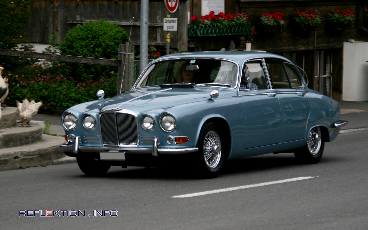JAGUAR 420 G 1961 präsentierte JAGUAR den MARK X als neues Modell für die Oberklasse. Die viertürige 5,13 Meter lange und 1,93 Meter breite Limousine erhielt den 3,8-Liter-6-Zylinderreihenmotor mit einer Leistung von 265 PS. Die Höchstgeschwindigkeit des 1,8 Tonnen schweren MARK X betrug 198 km/h - vor 50 Jahren ein unglaublicher Wert. Ab 1964 war der Hubraum bei gleicher Leistung aber höherem Drehmoment der auf 4,2 Liter vergrößert worden. Ab 1966 hieß das Modell 420 G. 1970 wurde die Produktion eingestellt. 2 Jahre war der 420 G parallel zum 1968 erschienenen Nachfolger XJ 6 gebaut worden. Das Design das MARK X bzw. 420 G war eine völlige Abkehr vom Vorgängermodell. Der Wagen wirkte stets etwas pummelig, die JAGUAR-typische Eleganz wurde erst mit dem Nachfolgemodell XJ 6 erreicht.