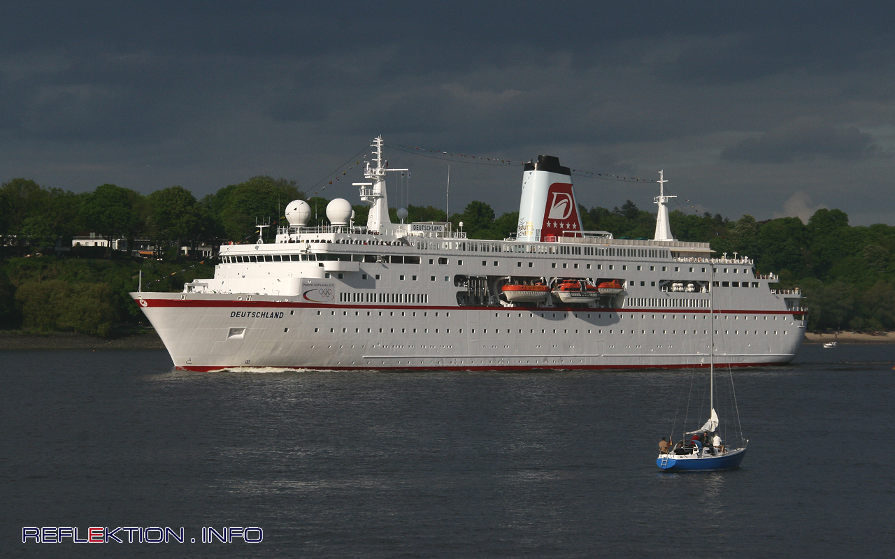 MS DEUTSCHLAND Auch die MS DEUTSCHLAND, seit Jahrhunderten das Traumschiff des ZDF, war beim 823. Hamburger Hafengeburtstag zu Besuch. Im Zuge der Auslaufparade beginnt die DEUTSCHLAND ihre Kreuzfahrt in die Ostsee.