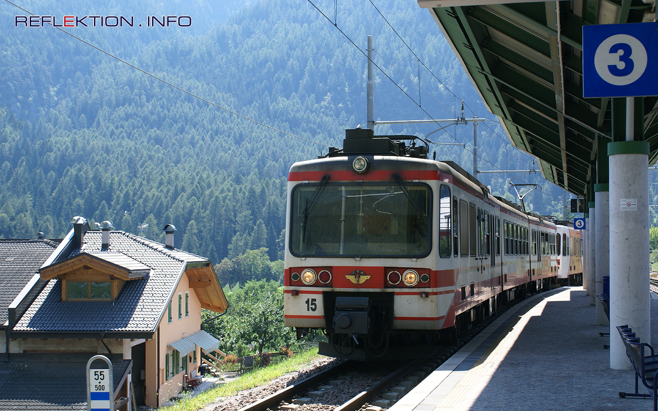 Auf 1000 mm-Schmalspurgleisen führt die 66 Kilometer lange Strecke der norditalienischen Bahngesellschaft Trentino Trasporti S.p.a.  von Trento über Mezzocorona und  Malé nach Marilleva.