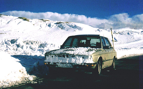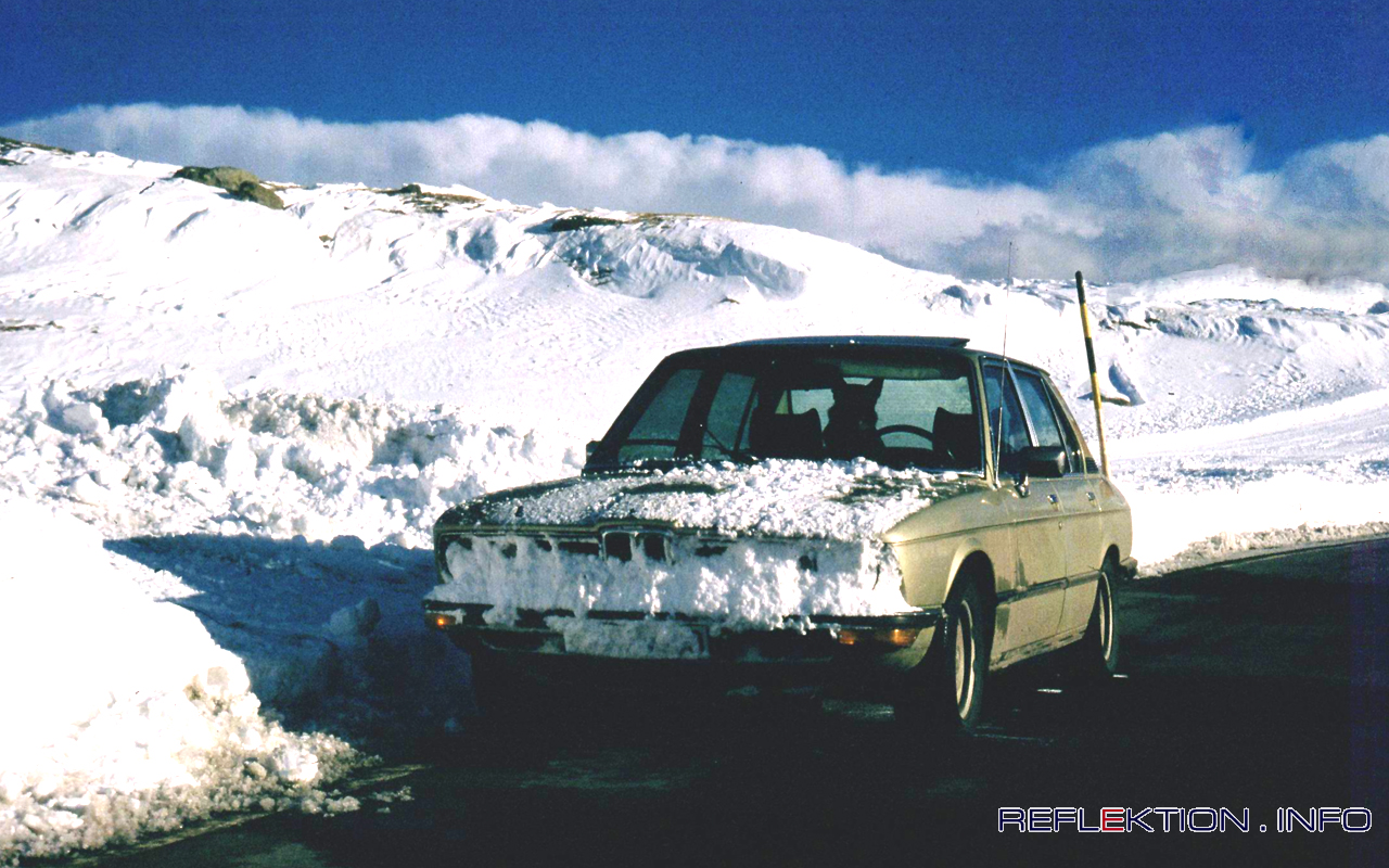 Schneeräumung am BERNINA PASS Der BERNINA PASS führt über 50 Kilometer vom Engadin auf rund 1700 Meter über Meer ins das italienische Addatal nach Tirano auf nur 440 Meter über Meer. Die Passhöhe befindet sich in 2330 Meter über Meer bei Ospizio Bernina (Bernina Hospiz). Der Pass ist ganzjährig befahrbar, obwohl von Oktober bis Mai gewaltige Schneemengen hier niedergehen. Nahezu ständig und rund um die Uhr sind die Räumfahrzeuge im Einsatz. So kann es passieren, daß man als Autofahrer vom einem links fahrenden Schneepflug überrascht wird und beim Warten in einer Haltebucht fast zugeschüttet wird. Fotostandort am Grünpfeil auf Google Maps