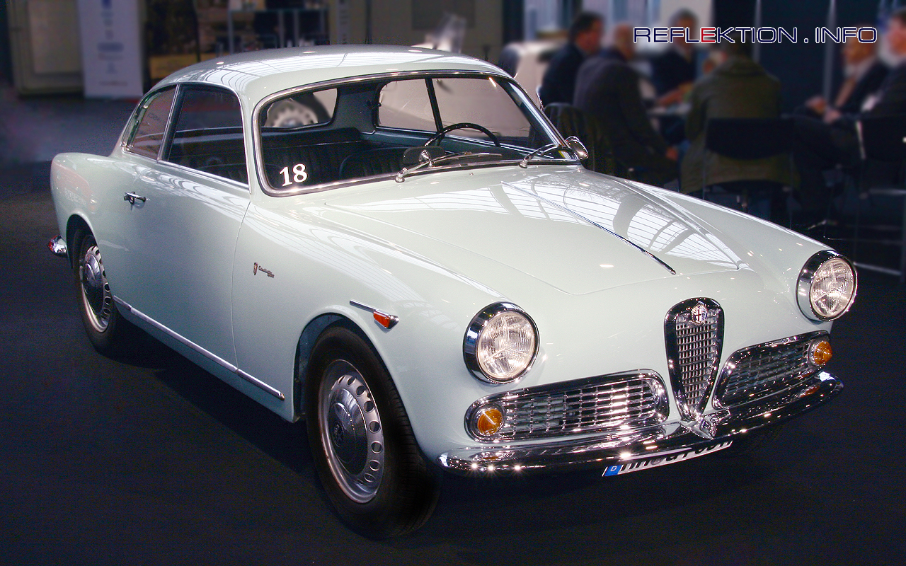 ALFA ROMEO GIULIETTA SPRINT 1600 (1958-1961) Die GIULETTA SPRINT wurde 1954 vorgestellt. Gezeichnet hat sie Boano in Zusammenarbeit mit Bertone und Bertone hat sie gebaut. Vorerst als GIULA SPRINT VELOCE 750 E mit einer 1290 ccm-Maschine und einer Leistung von 65 PS. Parallel wurde ab 1959 die GIULETTA SS (ebenfalls Bertone) als schneller Reise-GT und die GIULETTA SZ (Zagato) speziell für den Motorsport angeboten. Ab 1962 wurde die GIULETTA SPRINT zur GIULA SPRINT mit 92 PS aus 1570 ccm. 1963 wird abermals der 1290 ccm-Motor zusätzlich verbaut - als SPRINT 1300. Bereits ab 1963 wird der ebenfalls von Bertone entworfenene GIULA SPRINT GT („Kantenhaube“) als Nachfolger produziert.