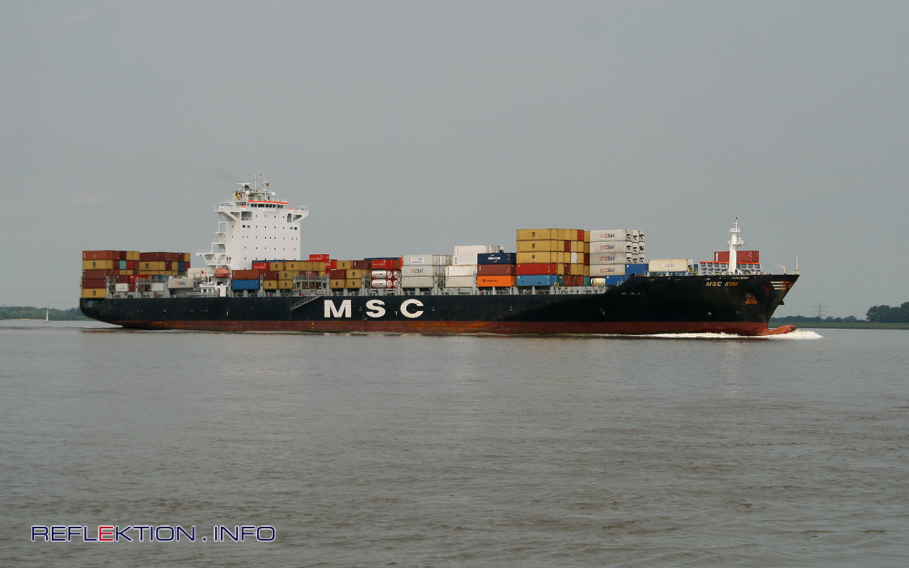 MSC KIM Der 2008 gebaute Containerfrachter KIM trägt bis zu 50.500 Tonnen in bis zu 4254 20-Fuß-Containern (TEU). Das Schiff ist 265 Meter lang, 32 Meter breit und hat einen Tiefgang von 13 Metern. Die Schwerölmaschine leistet knapp 37.000 Kilowatt, die Höchstgeschwindigkeit beträgt 24,5 Knoten (45 km/h). Die Reederei MSC setzt den Frachter im Liniendienst nach Südamerika im ‘Brazilian string’ genannten Umlauf ein. Ein Törn dauert 49 Tage und führt über Le Havre, Rotterdam, Hamburg, Bremerhaven, Antwerpen, Lissabon, Santos, Paranagua, Navegantes, Santos, Rio de Janeiro, Salvador.