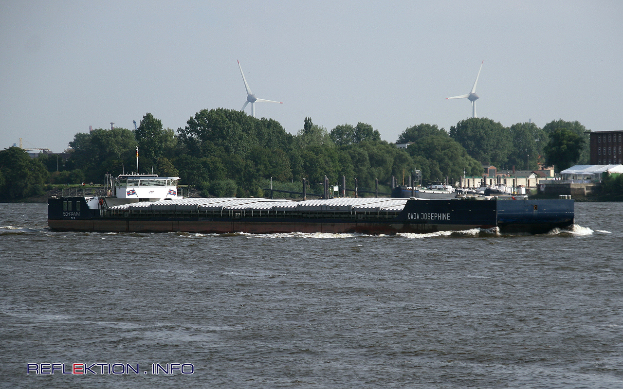 KAJA JOSEPHINE Das Binnenschiff KAJA JOSEPHINE entstammt dem neuem Schiffstyp FUTURA CARRIER, der eine große Anzahl von Neuerungen in sich vereint. Das neue Schiff ist modular aufgebaut, besitzt 4 Ruderpropeller-Antriebe und ein neues Rumpfdesign mit einem Doppelbug. 4 Schiffe dieses neuen Typs sind derzeit im Einsatz, weitere sind in der Planung. Der Schiffsrumpf besteht aus 3 Modulen. Der Doppelrumpfbug, der Laderaum und die Heckpartie sind fest miteinder verbaut. Der markante und auffällige Doppelbug ist für flache und enge Gewässer entwickelt worden. Diese Ausführung führt bei Fahrt mehr Luft unter das Schiff, so daß der Fahrwiderstand durch diese Luftschmierung wesentlich geringer als bei herkömmlichen Binnenschiffen ausfällt und zu erheblichen Energieeinsparungen führt.