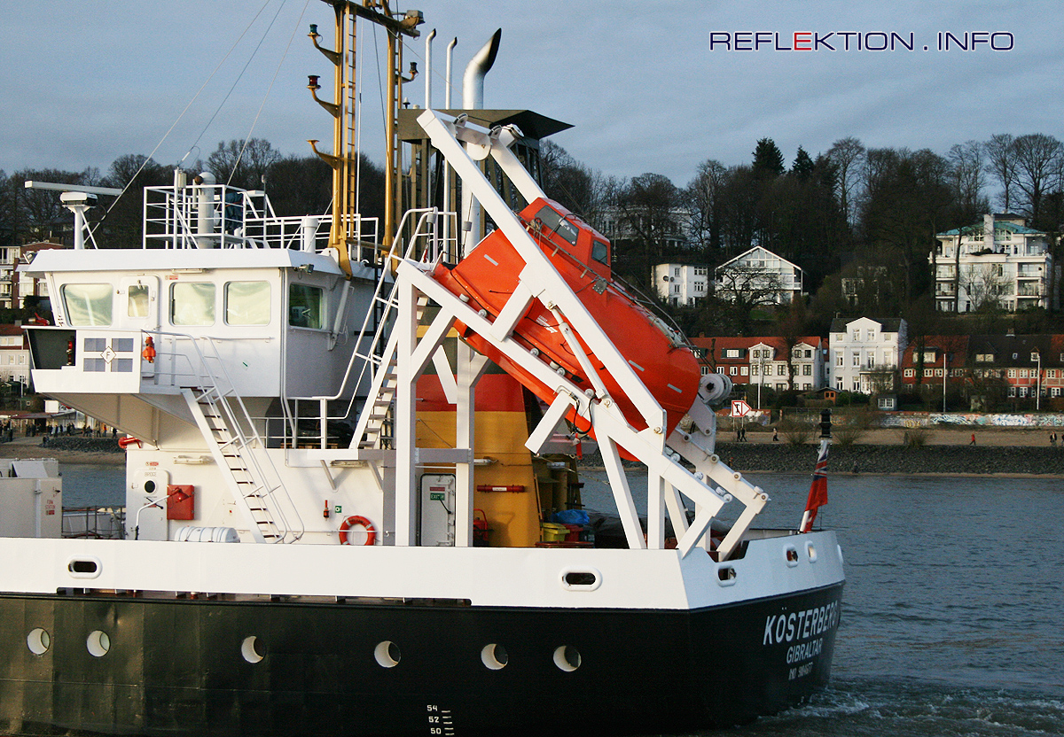 FREIFALL-RETTUNGSBOOT Immer nahe bei den Aufbauten ist dieses moderne Rettungssystem in einer speziellen Rutschbahn auf Frachtschiffen verankert. Der Einstieg in das vollkommen geschlossene Rettungsboot geschieht durch das Heck. Je nach Größe des Schiffes ist der freie Fall des Rettungsbootes unterschiedlich lang. Entgegen der Fahrt- bzw. Fallrichtung schnallt sich die Mannschaft in Schalensitzen mit Sicherheitsgurten an. Die Auslösung des Bootes erfolgt von innen. Das Boot kann dann mit dem eigenen Motorsystem den Havaristen verlassen. Zusätzlich sind im Boot Frischwasser, Medikamente und Lebensmittel für eine bestimmte Zahl von Tagen untergebracht. Das Notfallsystem des Rettungsbootes sendet nach der Wasserung selbstätig Notrufe aus. Wegen des relativ großen Raumbedarfs wird dieses System zur Zeit nur auf Frachtschiffen verwendet.