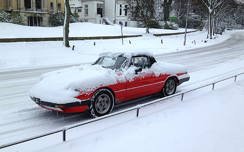 Frühling in Hamburg - Cabriozeit Der meteorologische Frühling hat vor nahezu 3 Wochen begonnen, morgen am 20.März ist astronomischer Frühlingsanfang. Und März ist auch in Norddeutschland der Monat, in dem die Cabriodächer dank frühlingshafter Wetterlage zumnidest tageweise nach hinten geklappt werden. In diesem Jahr ist alles anders - innnerhalb der letzten Tage fielen in Hamburg und Umgebung bis zu 60 cm Neuschnee - übereinander, nicht wie gewöhnlich nebeneinander. Und nun schneit es schon wieder - der leuchtend rote ALFA SPIDER, der optimistisch schon einmal an der Außenalster geparkt wurde, wird weiß und weißer und weißer und.....