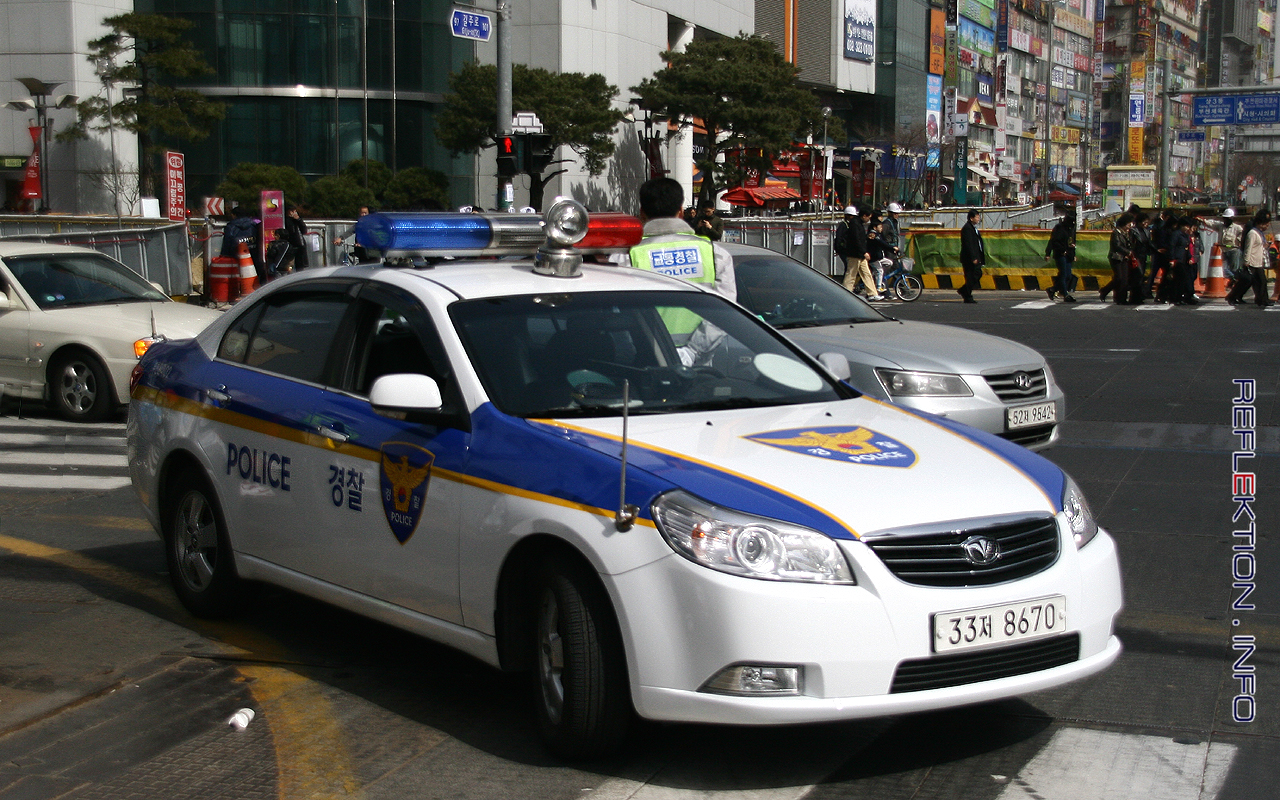 DAEWOO TOSCA als Streifenwagen in Korea Mit typisch US-amerikanischer Sirene und Leuchtleiste auf dem Dach verschafft sich die südkoreanische Polizei mit ihren Streifenwagen vom Typ DAEWOO TOSCA Respekt. Mit einem 125 PS starkem vierzylindrigen 1,8-Liter-Benzin-Motor sind die Fahrzeuge angemessen ausgerüstet.