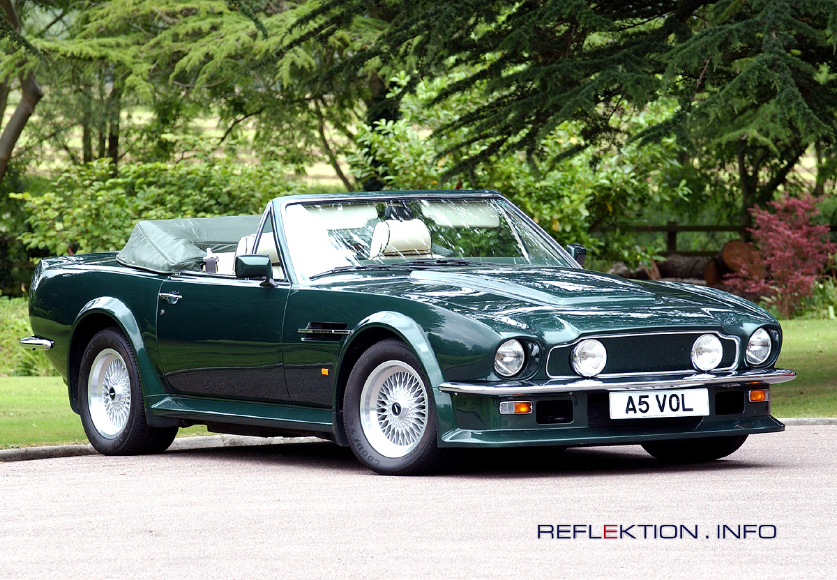 ASTON MARTIN V8 VANTAGE VOLANTE die perfekte Symbiose von Sportlichkeit und Luxus zeichnet ASTON MARTIN seit jeher aus. Einige Daten: Modell 1986 Länge 4674 mm, Breite 1880 mm, Höhe 1341 mm, Radstand 2610 mm TypV-8-DOHC, Hubraum 5341 ccm 400 PS (297 kW) bei 6000 U/Min max. Drehmoment 529.0 Nm bei 5000 U/Min 0-100 km/h 5,40 Sekunden Höchstgeschwindigkeit 264 km/h, Tankinhalt 97.5 Liter