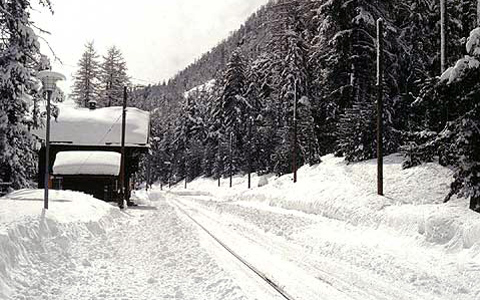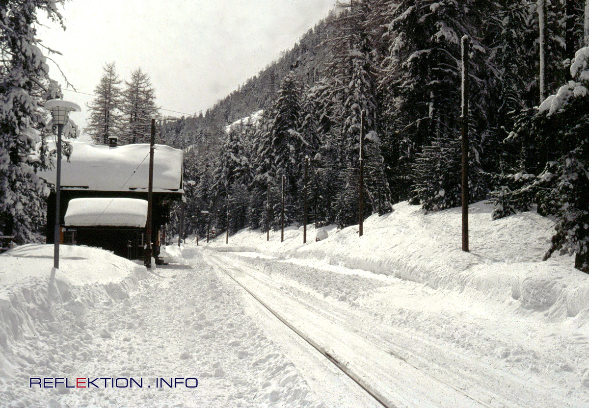 BERNINA BAHNStaziun Surovas Betriebsruhe zum Jahresausklang Auf 1825 Meter Höhe in der Staziun Surovas der BERNINA BAHN ist soeben der letzte Expresszug St. Moritz - Tirano abgefahren Surovas auf Google-Maps