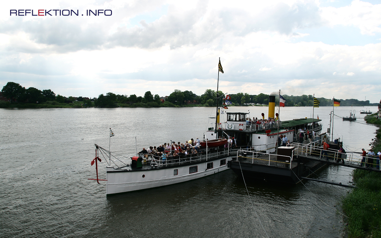 RADDAMPFER KAISER WILHELM Für die Hamelner Oberweser-Dampfschifffahrt baute 1899 die Dresdener Maschinenfabrik & Schiffswerft AG den Raddampfer KAISER WILHELM. Stapellauf war am 20. Mai 1900. 10 Jahre später kehrte die KAISER WILHELM zu ihrer Bauwerft zurück. Sie wurde dort umgebaut und um 10 Meter verlängert. Bis zur Ausmusterung 1970 fuhr die KAISER WILHELM auf der Weser zwischen Hannoversch Münden und Hameln. Enthusiasten aus Lauenburg retteten den Raddampfer vor der Verschrottung und überführten ihn nach Lauenburg an die Elbe. Nach einer grundlegenden Instandsetzung ist die KAISER WILHELM seit 1971 jedes Jahr zwischen Mai und Oktober wieder alle 14 Tage mit maximal 350 Passagieren auf der Elbe zwischen Lauenburg und Hitzacker in Fahrt. Die 57 Meter lange und 8,40 Meter breite KAISER WILHELM wird noch immer mit Kohle befeuert. Die meisten Dampfschiffe fahren heute mit Heizöl. Die 2-Zylinder-Verbunddampfmaschine hat eine indizierte Leistung von 168 PS. Ihre beiden Schaufelräder lassen sie mit höchstens 8 Knoten (15 km/h) durch das Elbwasser pflügen.