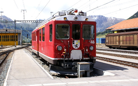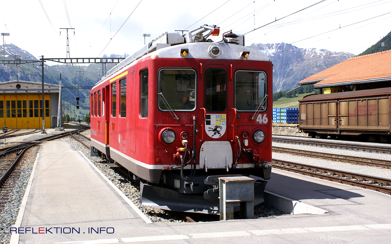 RHÄTISCHE BAHN BERNINA BAHN ABe 4/4 46 Die 9 Triebwagen ABe 4/4 II 41-49 waren die ersten neuen Fahrzeuge für die BERNINA BAHN seit Fusion mit der Rhätischen Bahn im Jahre 1943. 41–46 erhielt die RhB 1964/1965, 47-49 folgten mit geringen Änderungen in der Fahrzeuglänge und der Drehgestellbauart 1972. Die rund 42 Tonnen schweren und 65 km/h schnellen Fahrzeuge leisten bis zu 680 kW. Auf der bis zu 7 % steilen Adhäsionsbahn beträgt die maximale Anhängelast 70 Tonnen. Im Herbst 2010 schieden alle ABe 4-4 II aus dem fahrplanmäßigen Verkehr aus. 41, 42, 43, 44 und 45 wurden bereits im November 2010 abgebrochen, 46, 47, 48 (als Xe 4/4 23201) und 49 stehen weiterhin im Betrieb und werden als Dienstfahrzeuge in Poschiavo und Pontresina stationiert.