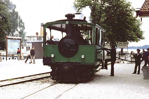 In Prien Stock erhält die einzige Dampflok ( Baujahr 1888) der Chiemseebahn frisches Wasser für die Rückfahrt.