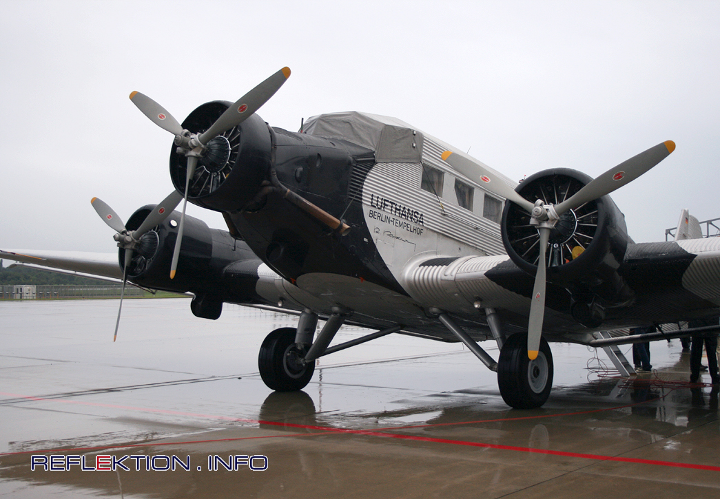 LUFTHANSA Ju-52 D-AQUI Am Ende dieses Rundflug-Tages übernachtet die Ju-52 im Freien. Die Fensterscheiben der Kanzel sind nie so ganz dicht, deswegen stülpen Pilot und Kopilot bei Regenwetter den Überzieher über die Kanzel. Der Tradition verpflichtet trägt die Ju das Kennzeichen D-AQUI. Die gültige Zulassung lautet jedoch D-CDLH.