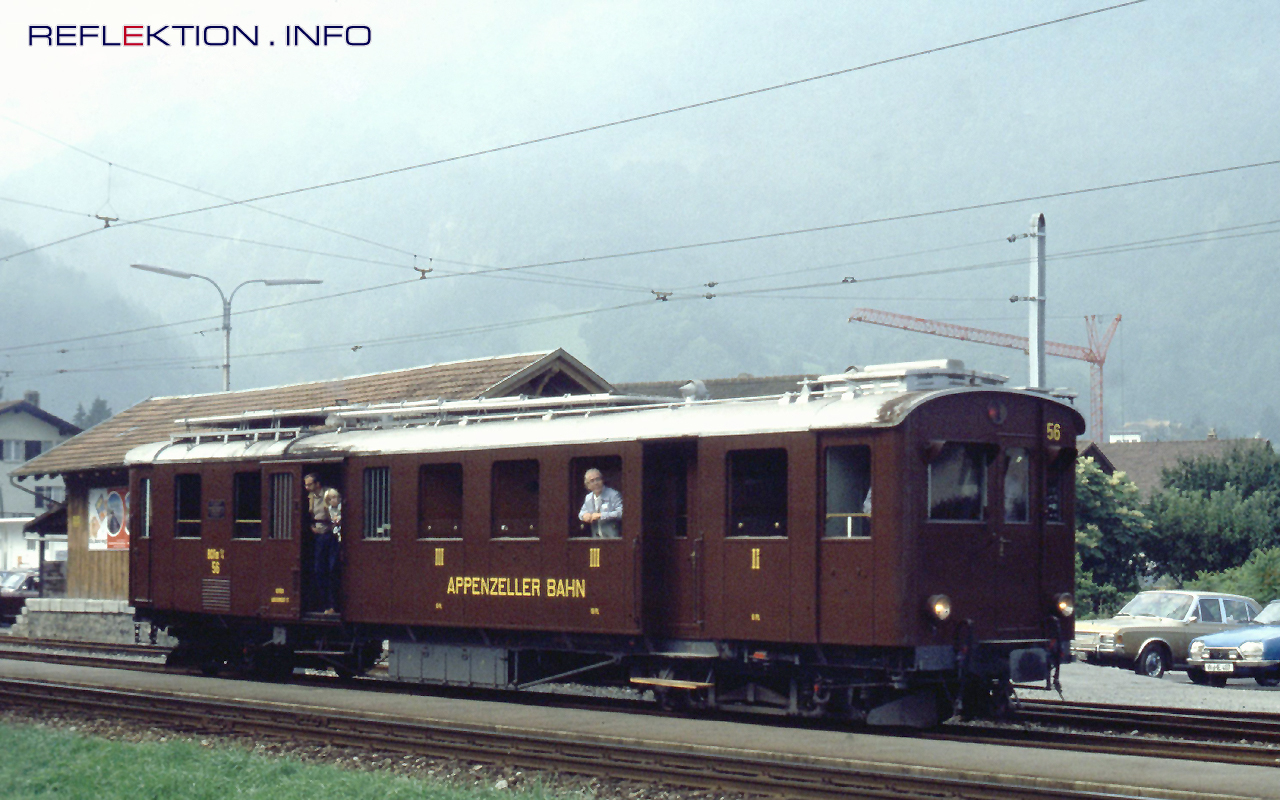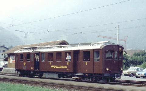 APPENZELLER BAHN BCFm 2/4 56 Vor 30 Jahren war der dieselelektrische Triebwagen BCFm 2/4 56 (Baujahr 1929) der APPENZELLER BAHN anläßlich einer Fahrzeugausstellung ins Berner Oberland zu den BERNER OBERLANDBAHNEN gekommen und verkehrte als Aushilfe im Spitzenverkehr auf den Talstrecken der BOB.
