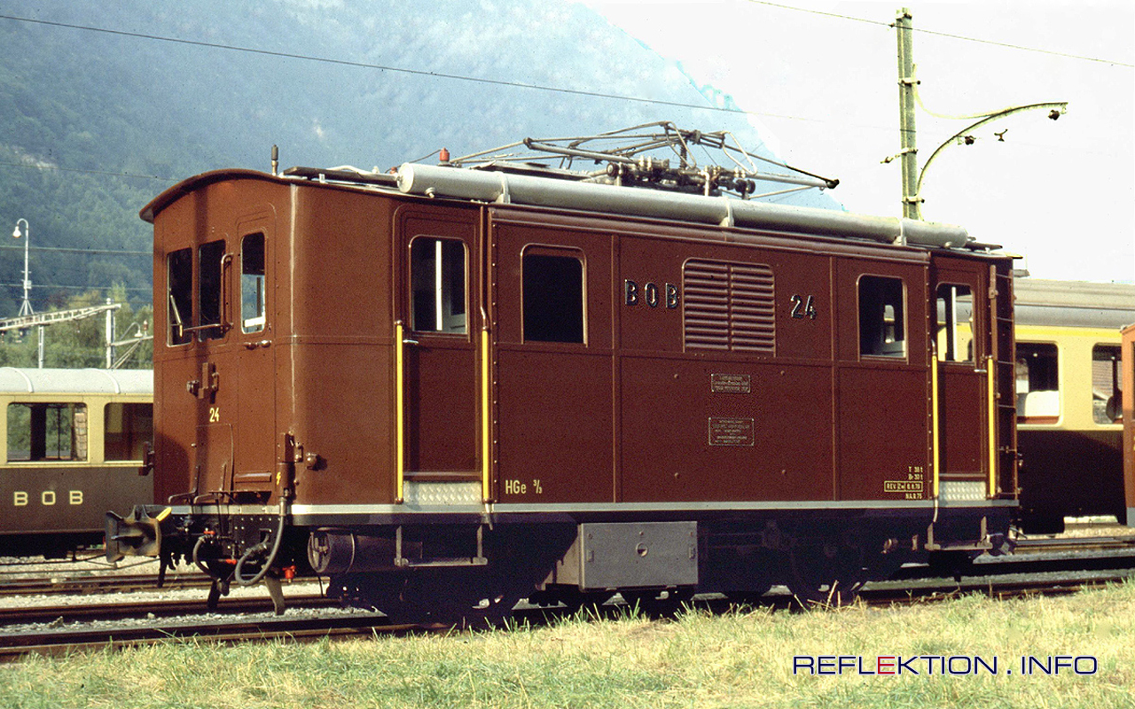 BERNER OBERLAND-BAHN HGe 3/3 24 Vor 99 Jahren, 1914 hat die 1890 eröffnete BERNER OBERLAND-BAHN für ihre knapp 26 Kilometer langen Adhäsions- und Zahnradstrecken von Interlaken Ost nach Lauterbrunnen bzw. Grindelwald 8 dreiachsige Elloks der Baureihe HGe 3/3 (Nr. 21-28) in Betrieb genommen. Die 35 Tonnen schweren Zahnradloks leisten knapp 300 kW und erreichen eine Geschwindigkeit bis zu 40 km/h auf den Adhäsionsstrecken und 15 km/h auf den bis zu 9,6 % steilen Zahnradstrecken. 1926 wurde die Nr. 29 nachgebaut. Heute steht nur noch die Nr. 24 für historische Sonderfahrten bereit.