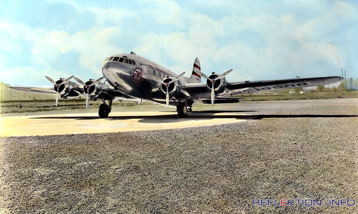 BOEING B307 STRATOLINER Die B307 war weltweit das erste Passagierflugzeug mit Druckkabine und konnte somit hoch über dem Wetter fliegen. TWA und PAN AM waren die Fluggesellschaften, die das vielversprechende Flugzeug schon ab 1939 einsetzten. Geplant war ein Transatlantik-Linienverkehr. Als Vorbild dienten die Non-Stop-Transatlantikflüge Berlin - New York der FOCKE WULF Fw 200 von 1938. Leider beendete der Eintritt der USA in den Zweiten Weltkrieg eine weitere Produktion der B307. Lediglich 9 Maschinen wurden fertig gestellt. Technische Basis war der ab 1934 und später ab 1940 in großen Stückzahlen gebaute Bomber B17 FLYING FORTRESS. Technische Daten: Länge 22,66 Meter, Spannweite 32,61 Meter, Höhe über Spornrad 6,63 Meter Startgewicht 19,2 t, Höchstgeschwindigkeit: 395 km/h, Reisegeschwindigkeit 315 km/h Gipfelhöhe 8.000 Meter, Reichweite bei Reisegeschwindigkeit 4050 km 4 Kolbenmotoren Wright Cyclone GR1829 mit je 880 PS 3-Blatt-Verstellpropeller 33 Passagiere, 7 Besatzungsmitglieder Erstflug am 31. Dezember 1938