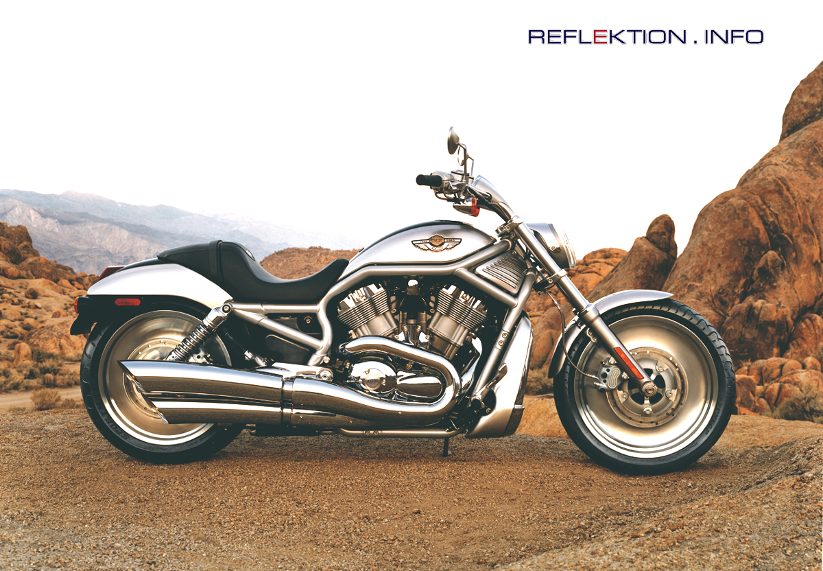 HARLEY-DAVIDSON V-Rod (VRSCA) Modell 2003 Anläßlich des 100. Geburtstags im Jahr 2003 rollte Harley-Davidson 24 Jubiläumsmodelle auf die Bühne. Eines der 24 gehört ins Segment POWER CRUISER und ist die V-Rod (VRSCA) Modell 2003 aus der Baureihe VRSC Die Buchstaben der Typbezeichnung VRSCA stehen für V-Twin Racing Street Custom Alpha. Das VR erinnert zudem an die Herkunft des neuen Motors: Er basiert auf dem Triebwerk der Werksrennmaschine VR 1000. Das Alpha schließlich deutet darauf hin, daß es sich bei der V-Rod um das erste Modell einer gänzlich neuen Baureihe handelt. Der V2 REVOLUTION MOTOR besitzt zwei obenliegende Nockenwellen und vier Ventile pro Zylinder. Aus 1131 cm³ zieht die Maschine 86 kW (117 PS). Der Motor trägt den Namen REVLUTION zu Recht, denn seine technischen Features unterscheiden ihn deutlich von allem, was HARLEY-DAVIDSON bislang für die Serie geschaffen hat. Um aus einem Renntriebwerk einen leistungsfähigen Motor für die Serie zu schaffen, arbeiteten die amerikanischen Ingenieure eng mit dem PORSCHE Entwicklungszentrum zusammen.