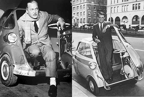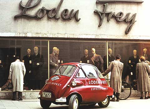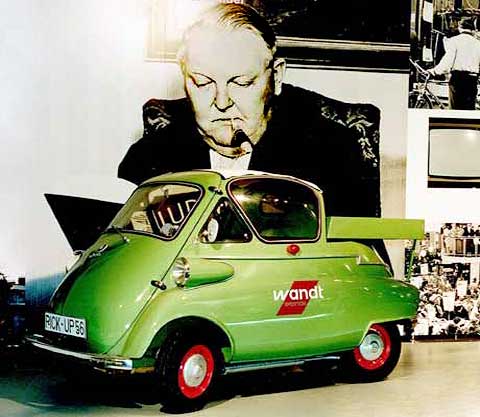 im Hintergrund der Vater des Wirtschaftswunders Ludwig Erhardt; davor eine Isetta als “Pick up” der Braunschweiger Spedition Wandt