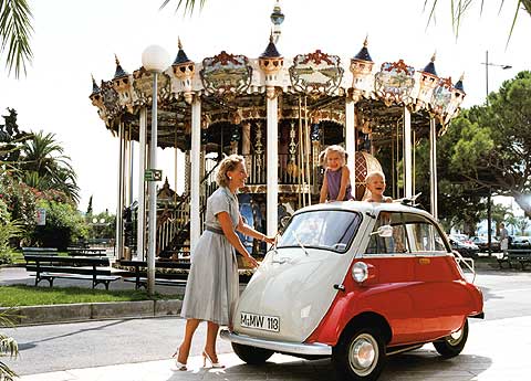 Mit der BMW Isetta erfüllte sich vor rund 50 Jahren für viele der Traum vom komfortablen Fortbewegungsmittel: Stahldach, Heizung und Stauraum. Heute symbolisiert die BMW Isetta eines der „Wirtschaftswunderautos“.