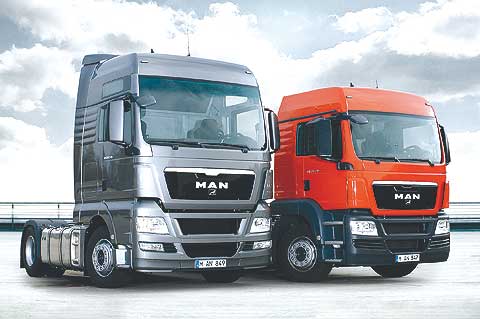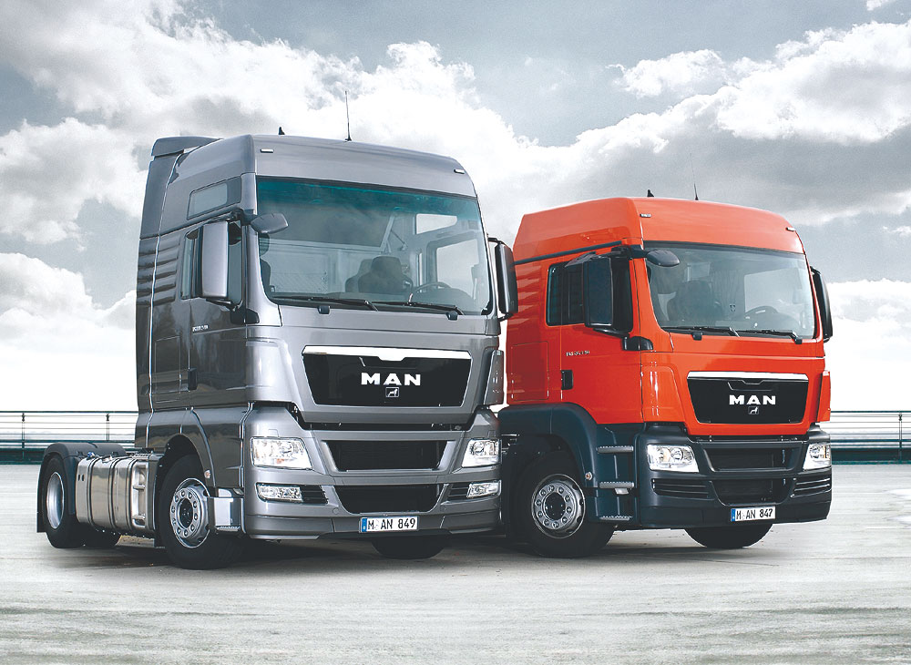 Links: MAN TGX V8 Flaggschiff der Trucknology®-Generation, rechts: MAN TGS