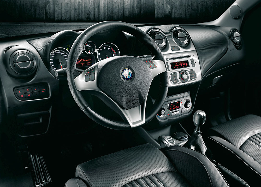 Auch im Interieur des MiTo ist der ALFA ROMEO-Charakter in jeder Pore spürbar. Die runden Lüftungsdüsen und eine solche Mittelkonsole würde man sonst nur in einem Sportwagen vermuten. Sportliche Versionen glänzen zusätzlich mit einem dreidimensional wirkenden Stoff, der an die gewebten Lederbahnen der 8C-Sitze erinnert.