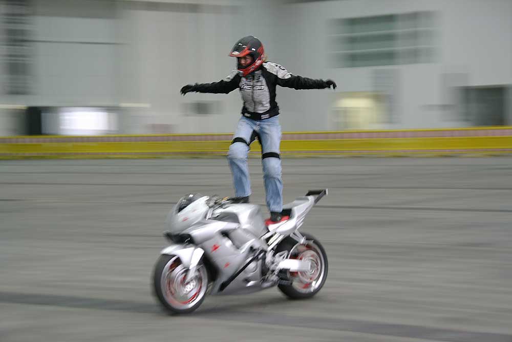 Das einzige Motorrad-Stunt-Girl Mai-Lin zeigt ihr Können genauso wie ...