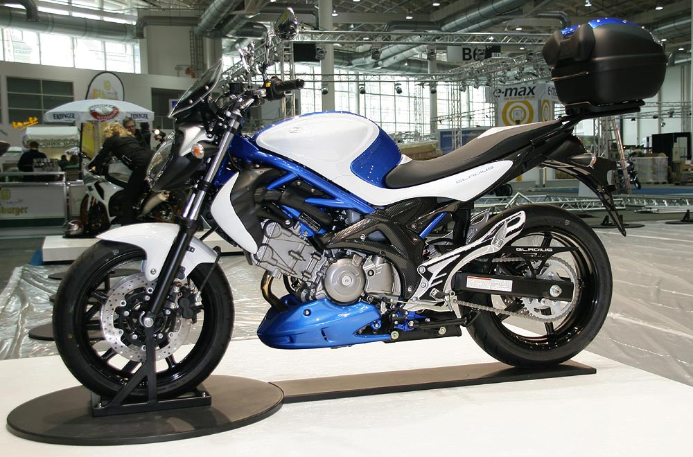 SUZUKI GLADIUS 650. 90° V2-Zylinder-Viertaktmotor, Hubraum 645m³, 53 kW bei 8.400 U/min.