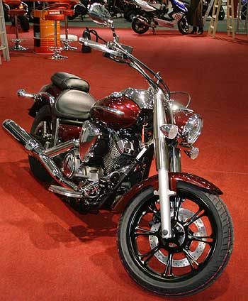 SUZUKI INTRUDER M 1500. Eine Cruiser, die von einem 54°-V2-Viertaktmotor angetrieben wird. Sie leistet 59 kW bei 4.800 U/Min., digitale Transistor-Spulen-Doppelzündung; Höchstgeschwindigkeit 190 km/h.